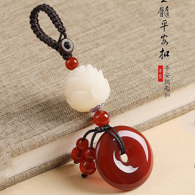Jade chalcedony gantungan kunci keamanan, liontin rantai kunci mobil pasangan pria dan wanita, Gantungan Kunci Lotus Bodhi