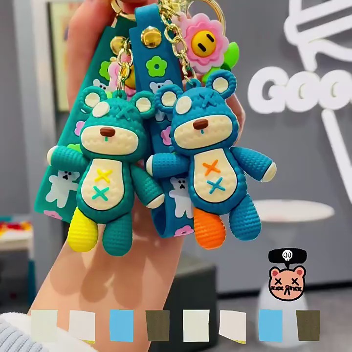 Ornamen tas buku wanita cantik gantungan kunci mobil beruang keren kartun kreatif liontin gantungan kunci pasangan lucu pria grosir