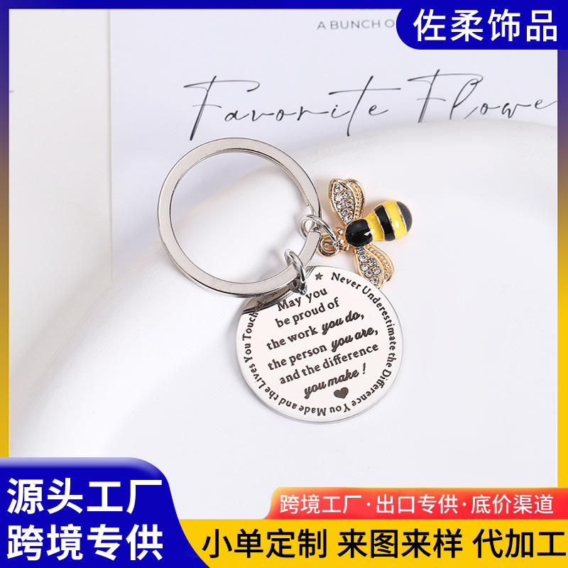Ornamen Aksesori kunci mobil, gantungan kunci logam lebah kartun, stainless steel