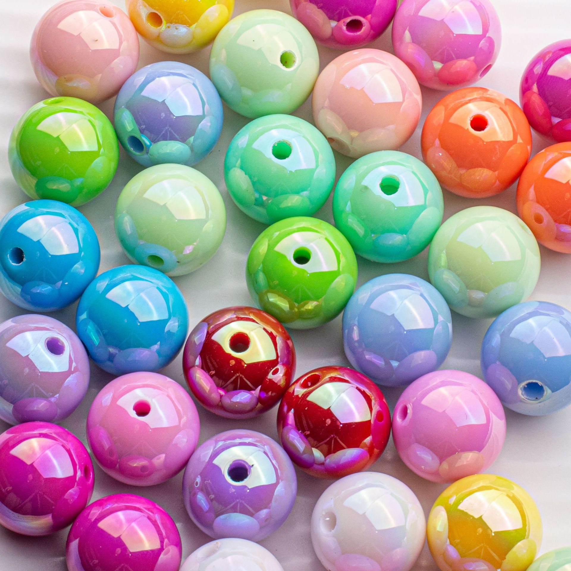 Manik-manik longgar, aksesori gantung mobil rantai ponsel DIY lapis UV akrilik manik lubang lurus warna solid warna-warni 16mm