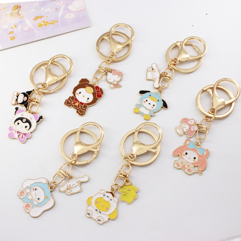 Gantungan kunci anjing Sanrio yukui, gantungan kunci mobil gaya Korea, gantungan kunci tas gesper gantung, gantungan kunci kreatif
