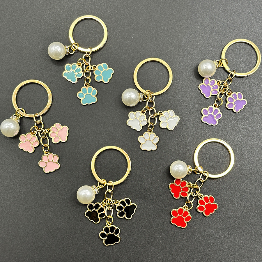 Gantungan Kunci Cakar Kucing Mutiara Logam Tas Kotak Rumbai Cakar Anjing Berkarakter Tas Liontin Mobil Hadiah Kecil Modis
