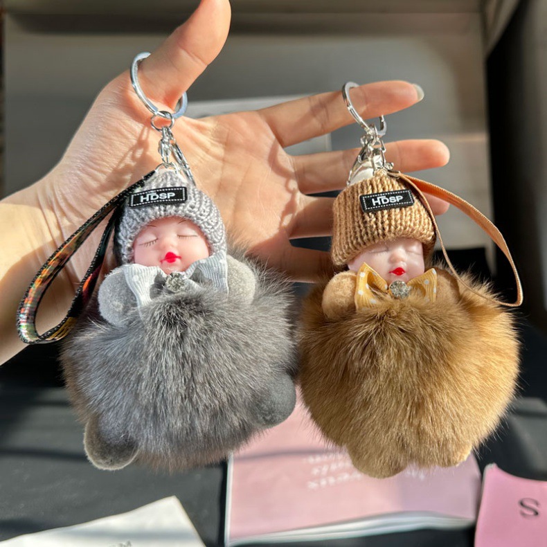 Fox boneka bulu ornamen gantungan kunci mobil, tas liontin boneka bulu lucu, hadiah pasangan