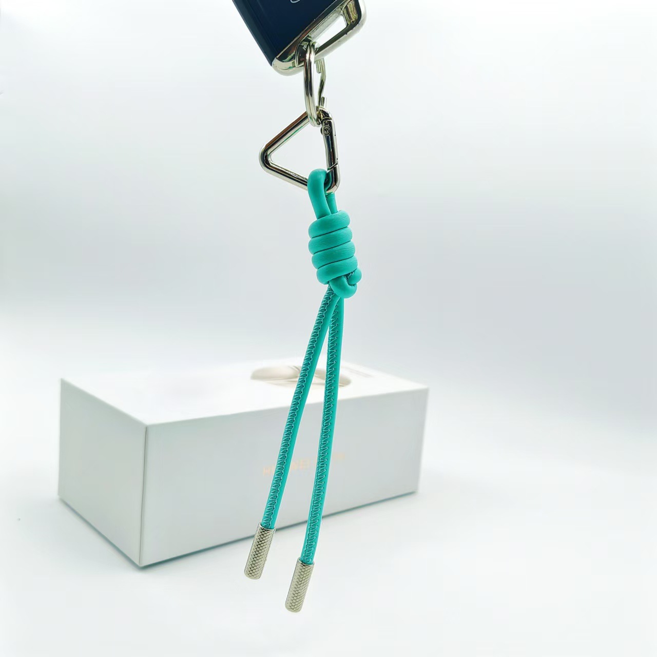 Rantai kunci segitiga, liontin tas kelas atas, rantai kunci mobil simpul berlian tenun tangan PU