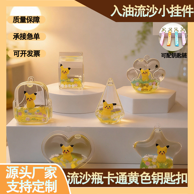 Botol pasir mengalir minyak akrilik kreatif seri kartun kuning gantungan kunci Aksesori Mobil ornamen desktop