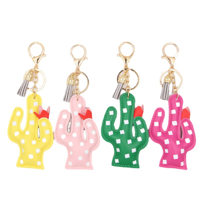 Ins hiasan mobil tas stroberi rumbai kreatif, gantungan kunci kaktus PU kartun