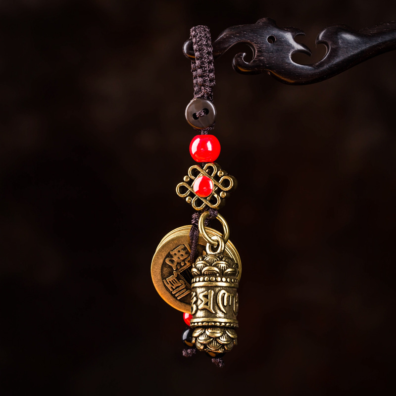 Enam kata mantra kuningan liontin gantungan kunci mobil liontin tas antik gantung perhiasan mewah sepeda motor pria dan wanita mode