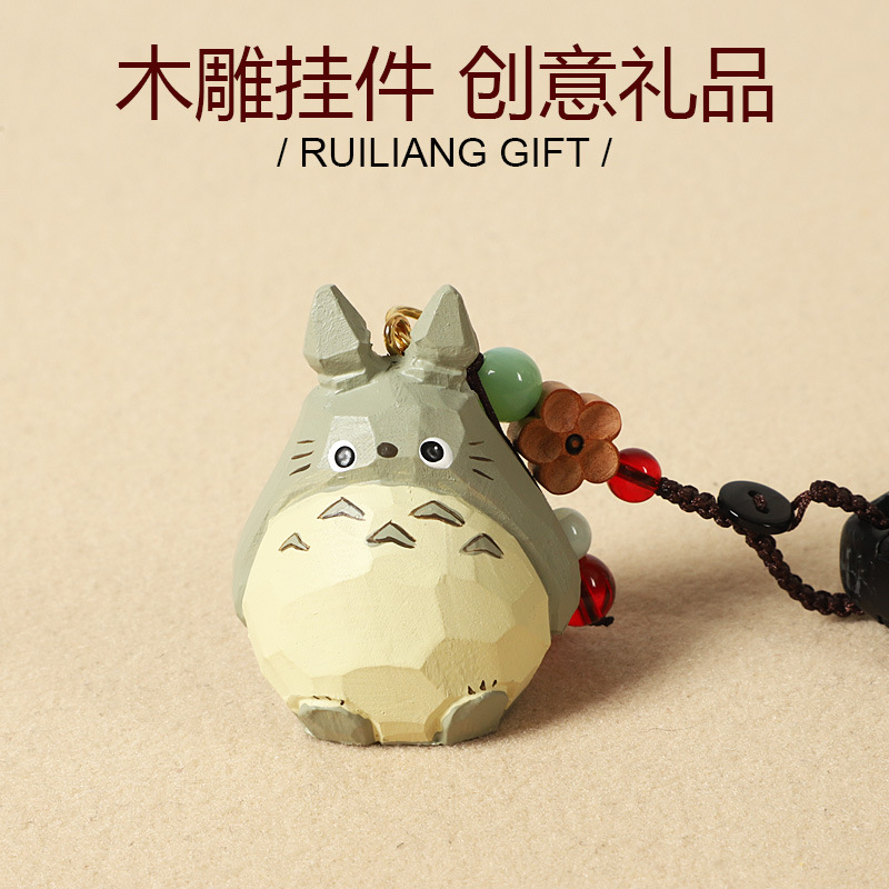 Gantungan Kunci Mobil Totoro Ukir Kayu Buatan Tangan Aksesori Tas Sekolah Lucu Hadiah Ulang Tahun Kreatif untuk Teman