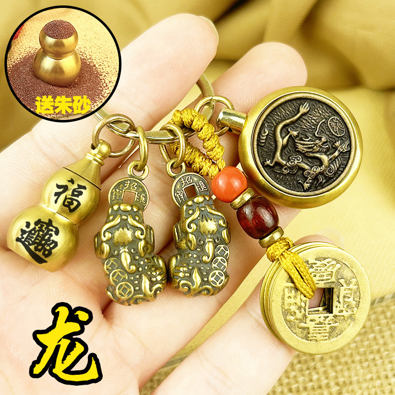 Liontin gantungan kunci zodiak kuningan murni, Aksesori liontin rantai kunci mobil kreatif pribadi pria dan wanita