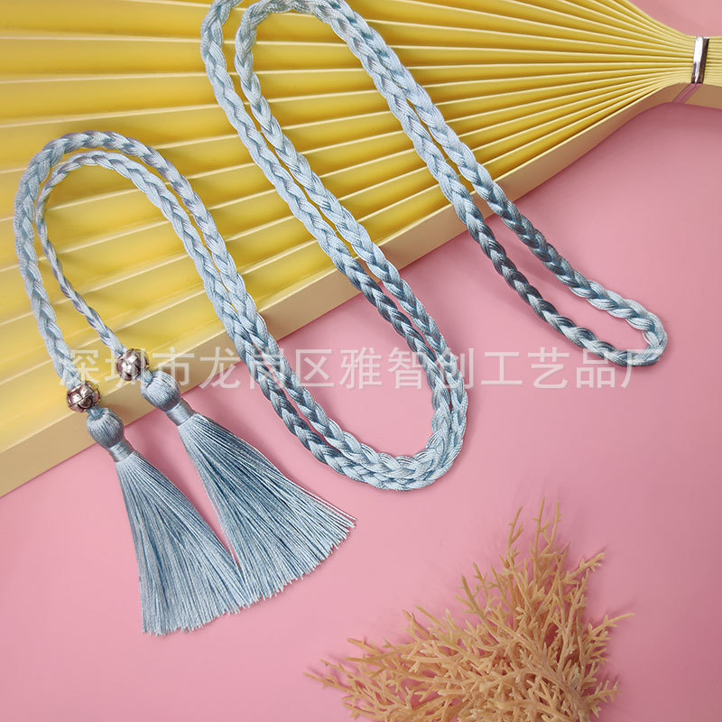 Produsen dalam stok jalinan sabuk rumbai kepala ganda aksesori pakaian wanita Hanfu istana poliester tali pinggang rumbai