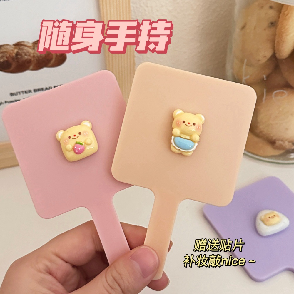 Cermin rias genggam kartun lucu untuk hewan peliharaan, cermin rias gaya ins tampak tinggi, gagang lucu, cermin kecil