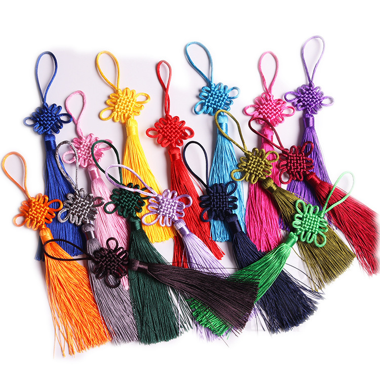 Dalam stok simpul Cina garis 5 6 piring ukuran kecil rumbai merah ornamen liontin lanyard aksesori mobil gantung