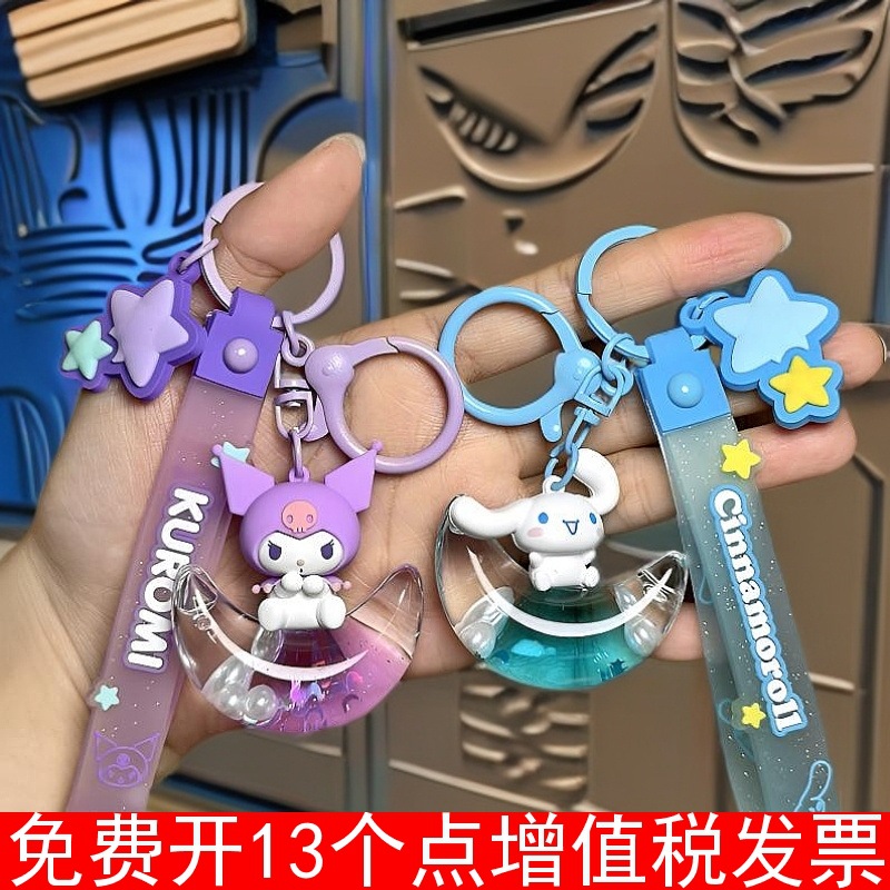 Liontin Mobil Tas Sekolah Kuromi Lucu Telinga Telinga Besar Halus Model Asli Sanrio Starlight Crescent Gantungan Kunci