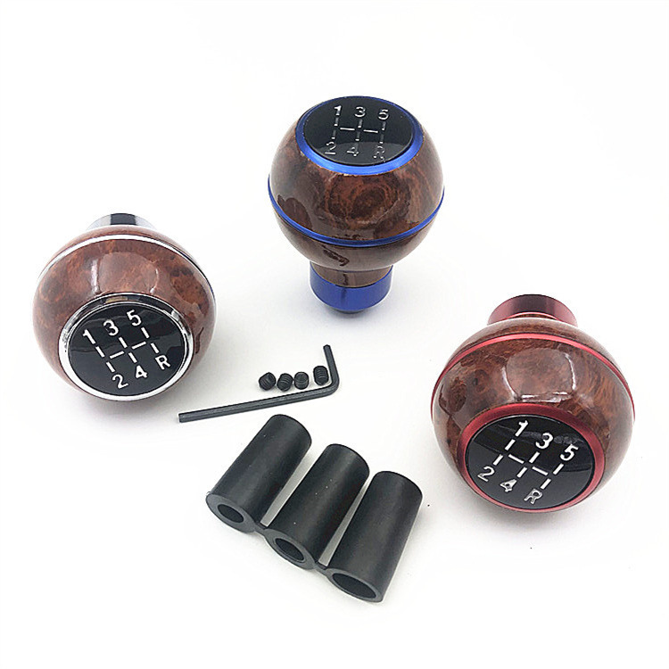 Kepala persneling manual 5 roda gigi, modifikasi mobil bahan Aloi aluminium, kepala es loli bulat kayu persik dengan bola roda gigi