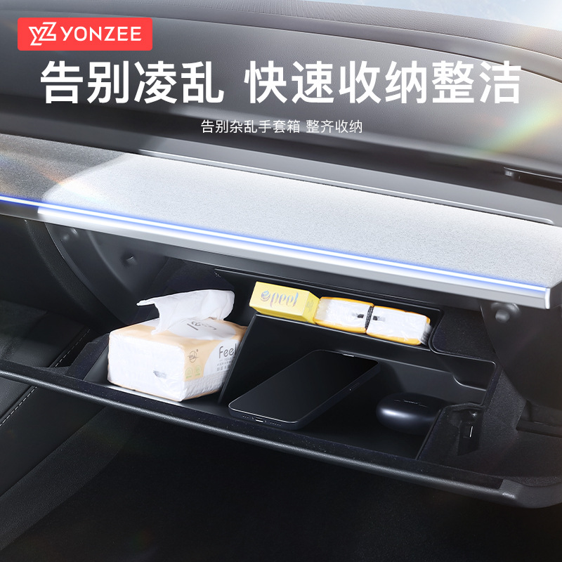 YZ cocok untuk Tesla Model3/Y co-pilot kotak sarung tangan penyimpanan kotak partisi modifikasi ya Aksesori interior mobil
