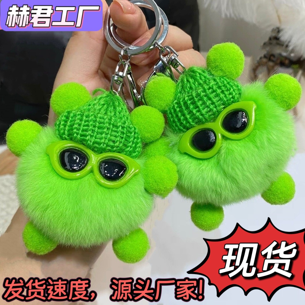 Lucu imitasi bulu kelinci Rex kecil bulu liontin tas sekolah ornamen boneka kartun gantungan kunci mobil grosir