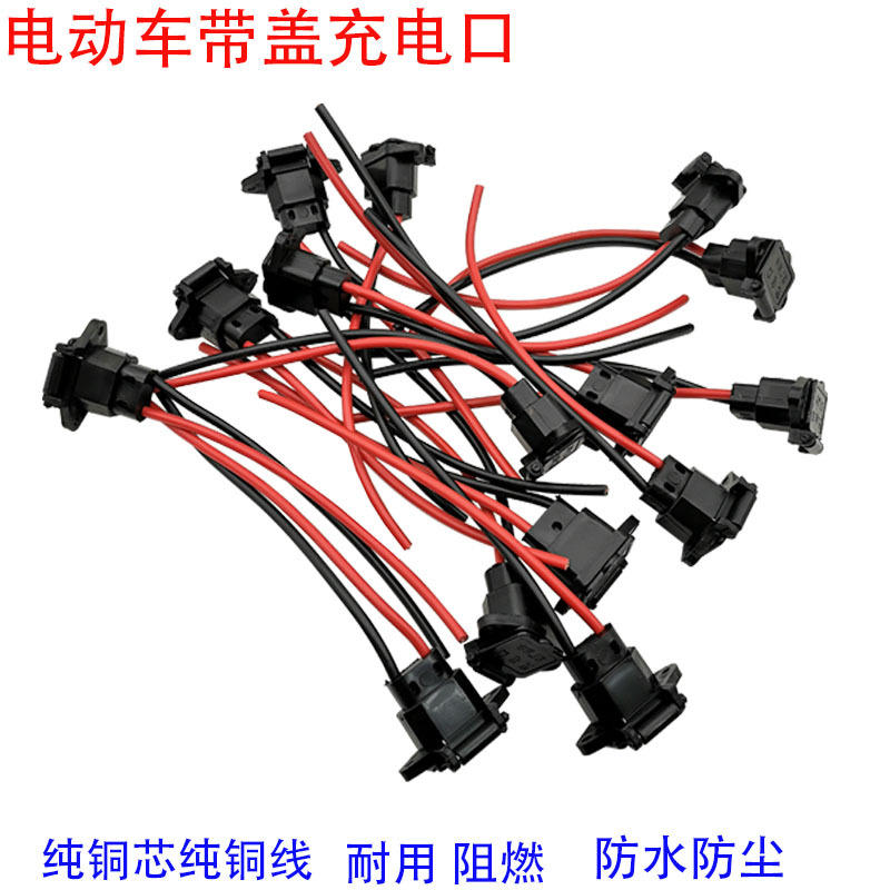 Soket pengisi daya baterai mobil elektrik, port pengisian, soket tembaga dengan penutup kawat, penutup jatuh otomatis