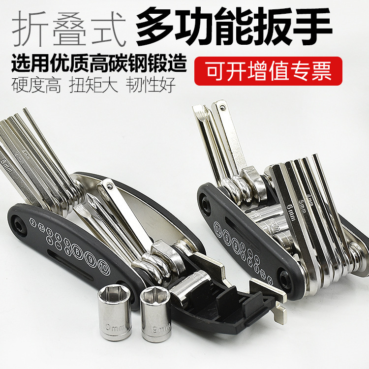 Obeng listrik sepeda motor mobil lipat multifungsi, alat perbaikan hex, kunci pas soket