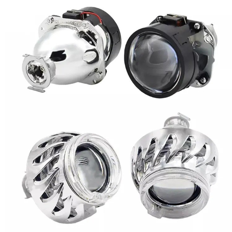 Penutup terintegrasi roda panas mata malaikat ganda 2.5 inci baru penutup bulat mata setan lensa cahaya ganda Universal HID biru putih