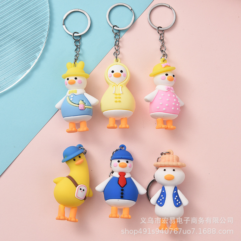 Gantungan Kunci kartun liontin bebek bengkok, gantungan kunci tas sekolah pelajar, gantungan kunci mobil bebek kuning kecil