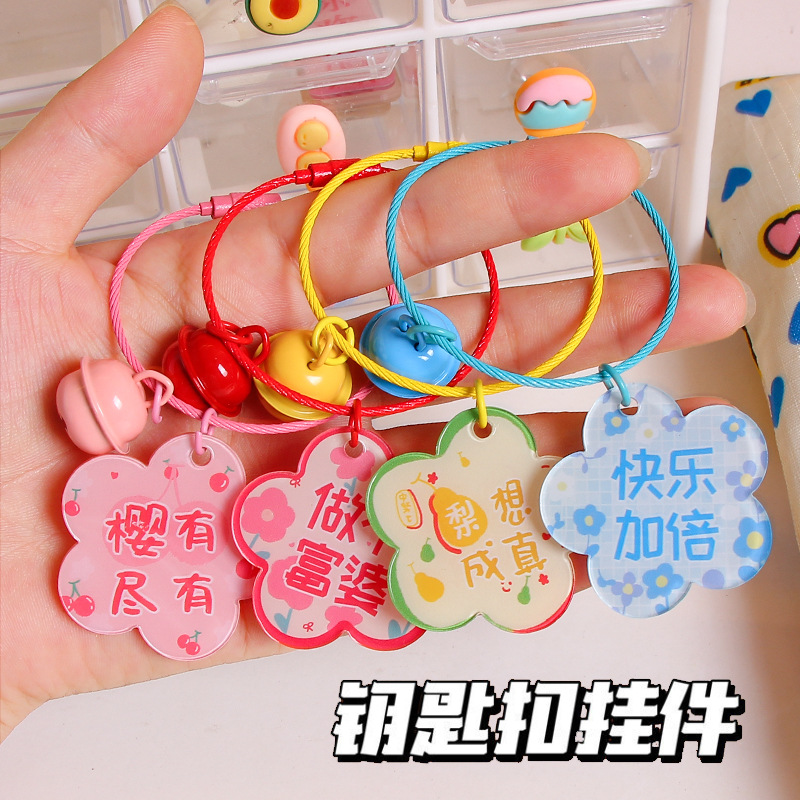 Gantungan kunci teks berkat kreatif, Gantungan Kunci dua sisi, kartu kata kreatif, gantungan kunci mobil, perhiasan anak perempuan, tas sekolah jaring hati, merah
