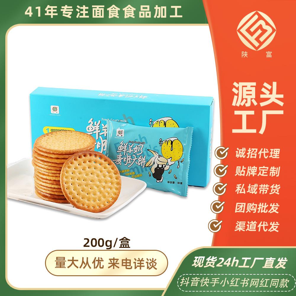 Shanfu biskuit susu kambing segar 200g, kue susu kambing lembaga gandum kue besar kasual makanan ringan Sarapan Shaanxi kotak khusus