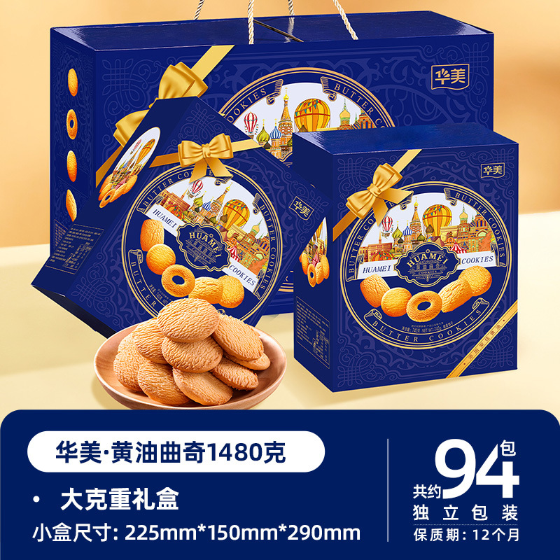 Huamei dua potong Huamei cookie makanan ringan Tahun Baru kotak hadiah 1480g Festival Musim Semi hadiah kantor Grup pembelian grosir