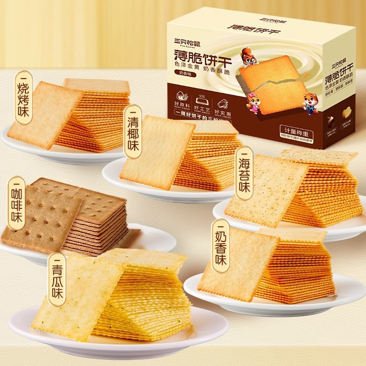 Tiga Squirrels_crispy biskuit 300g, biskuit kantor makanan sarapan kasual