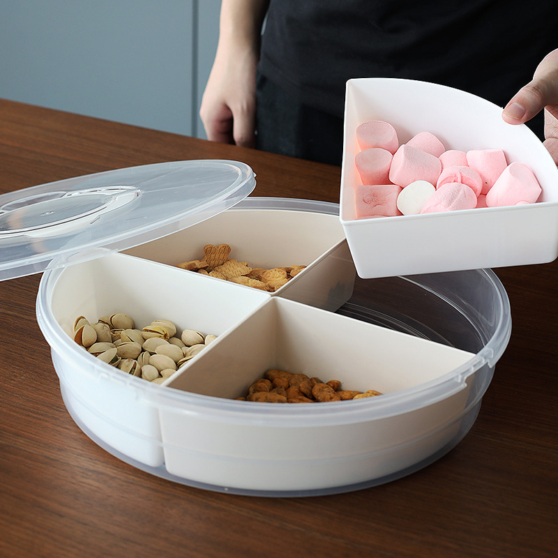 Kompartemen multifungsi piring permen dengan gesper tutup disegel tahan kelembaban piring buah ruang tamu Tahun Baru pernikahan biji melon piring grosir