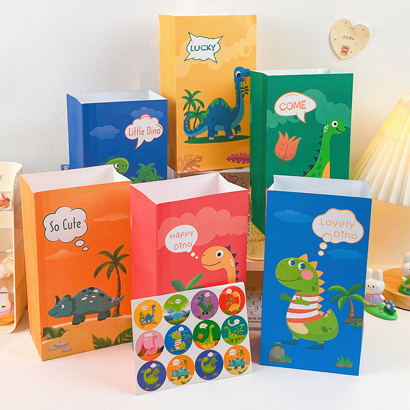 Pabrik Penjualan Langsung 100g Tas Kertas Kulit Sapi Kartun Seri Dinosaurus Tas Permen Pesta Ulang Tahun Tas Makanan Tas Hadiah