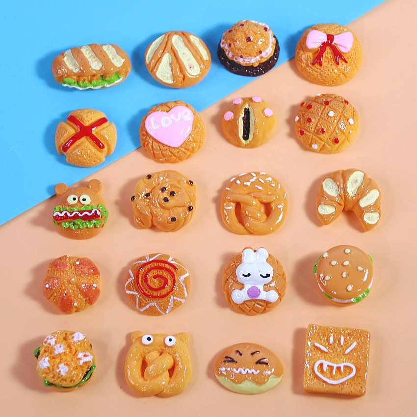 Jepit rambut roti biskuit kue resin, aksesori mainan rumah bermain jepit rambut cangkang ponsel DIY roti biskuit kue resin
