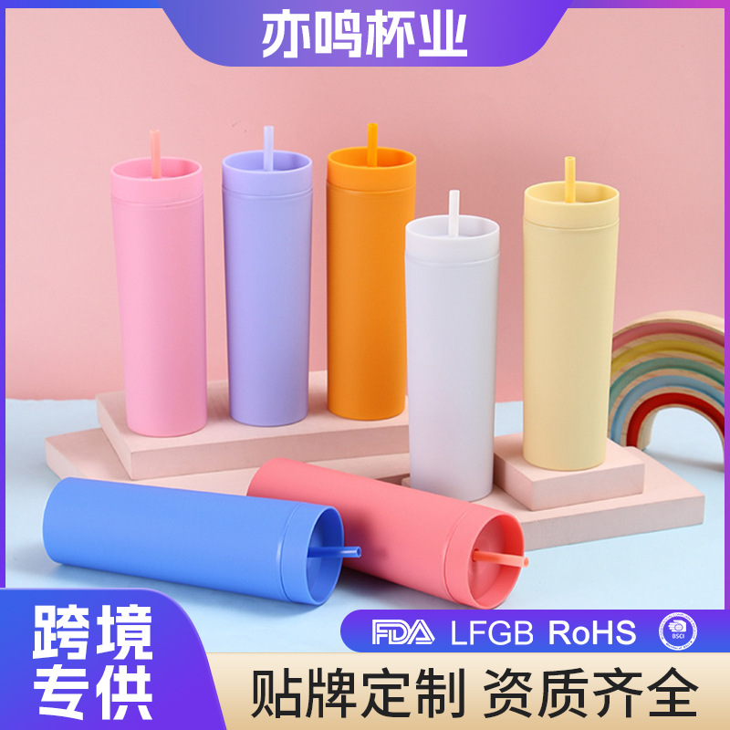 Gelas Plastik Dua Lapis Warna Permen Sederhana Nilai Wajah Tinggi Gelas Olahraga Luar Ruangan Portabel Siswa Gelas Sedotan 16OZ