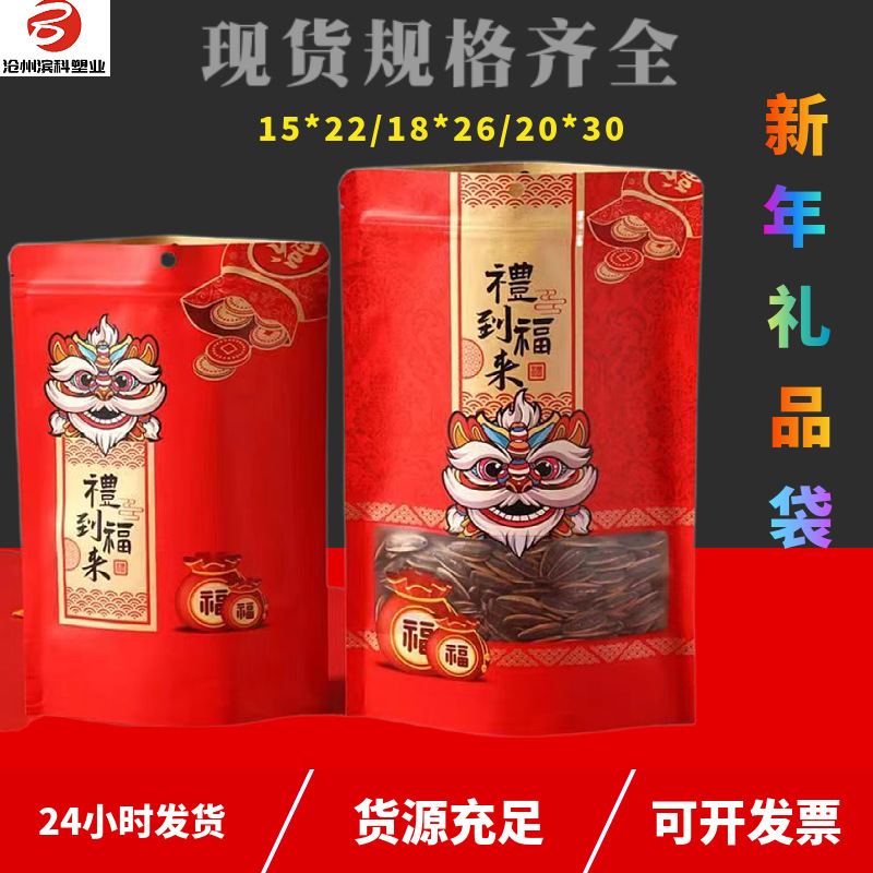 Tas hadiah Tahun Baru stok tersedia tahun naga merah barang Tahun Baru tas kertas Kraft penyegelan diri 18*26 kacang barang goreng tas tersegel