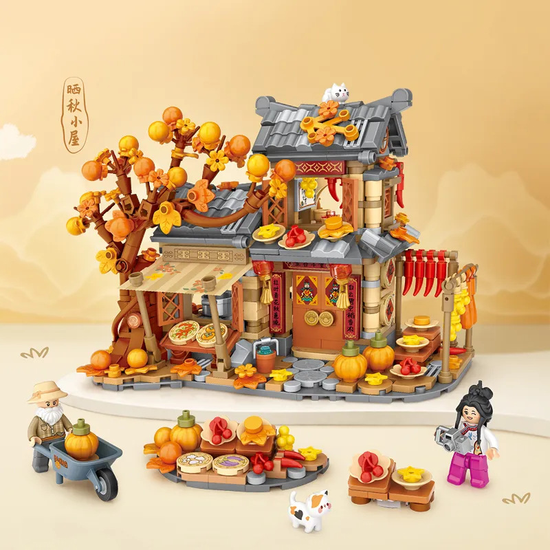 Mainan Butir Kecil Blok Bangunan Cina di Musim Gugur