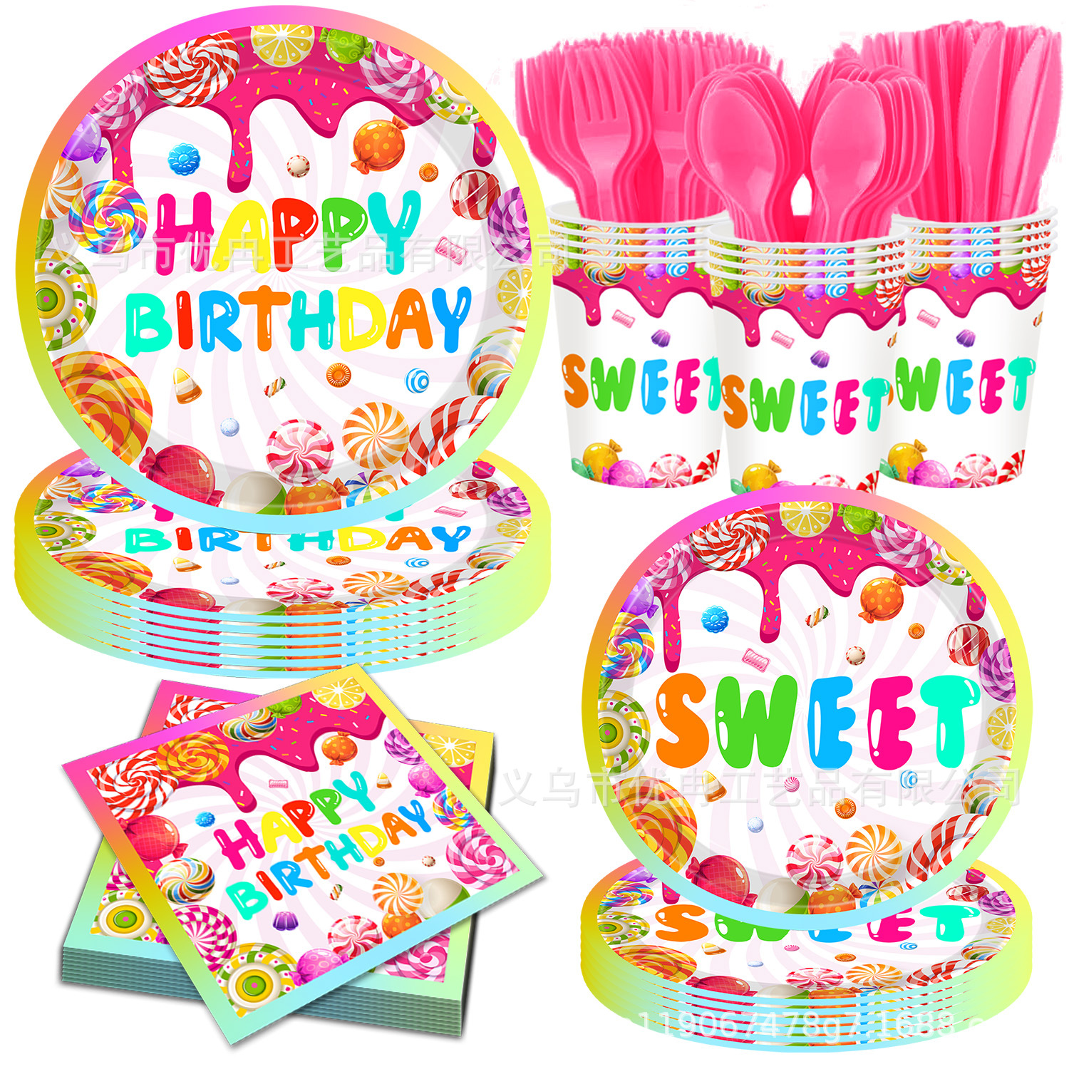 Permen lolipop manis sekali pakai nampan kertas sekali pakai taplak meja handuk kertas pesta ulang tahun set perlengkapan dekorasi