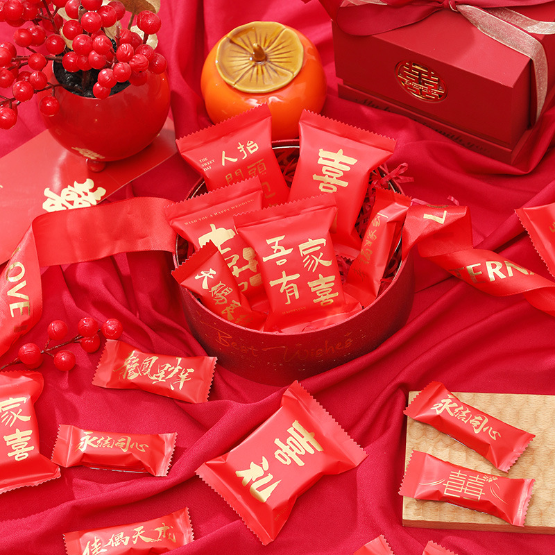 Tas kemasan renyah kepingan salju meriah Tahun Baru tas segel mesin merah nougat tas permen transparan tas biskuit pernikahan