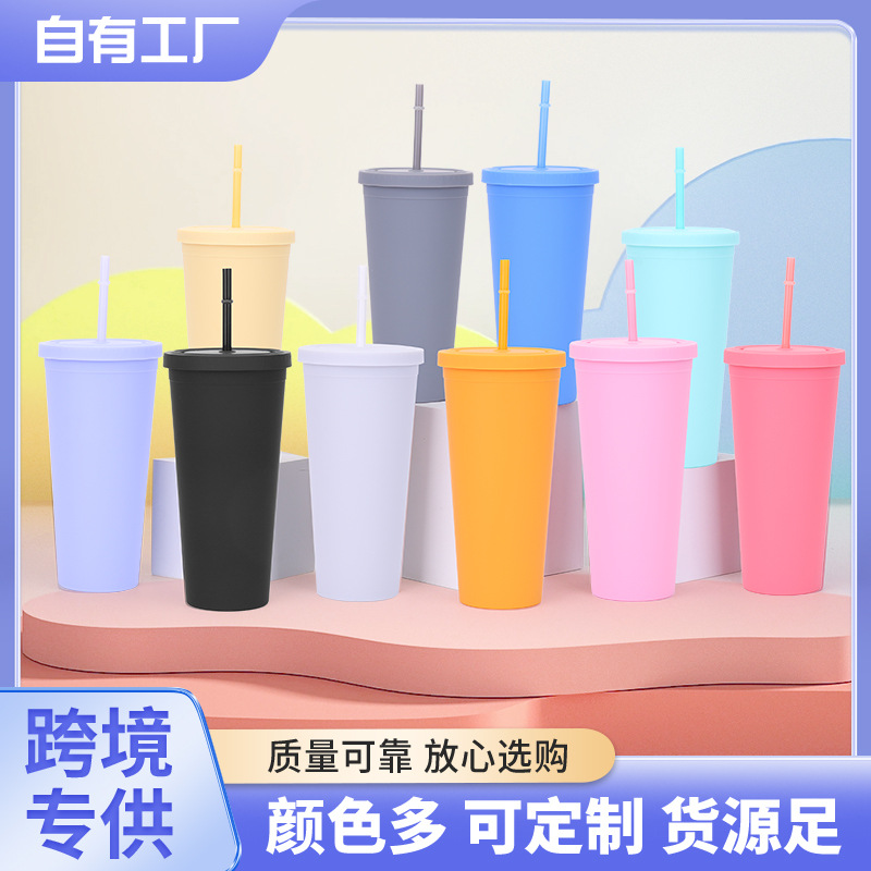 Grosir Pabrik cangkir sedotan plastik ganda kreatif kapasitas besar cangkir kopi cat karet warna permen cangkir air musim panas