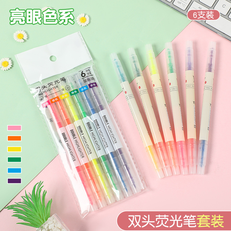 Atas kepala dua warna kreatif highlighter warna siswa lampu kunci stroke warna pena penanda warna permen pena jurnal pena menandai
