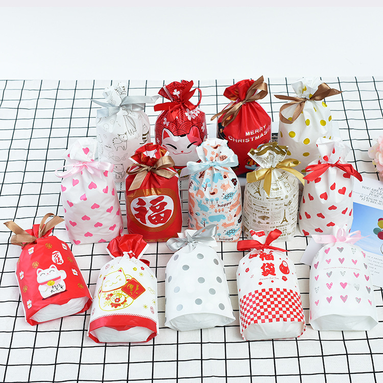 Tas serut pita segar, kantong pembungkus Natal Tahun Baru, tas bundel kue biskuit 50
