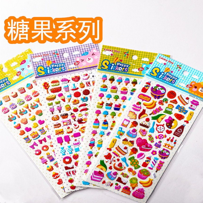 Stiker gelembung 3D anak-anak, stiker kecil diy seri permen suasana kreatif untuk taman kanak-kanak