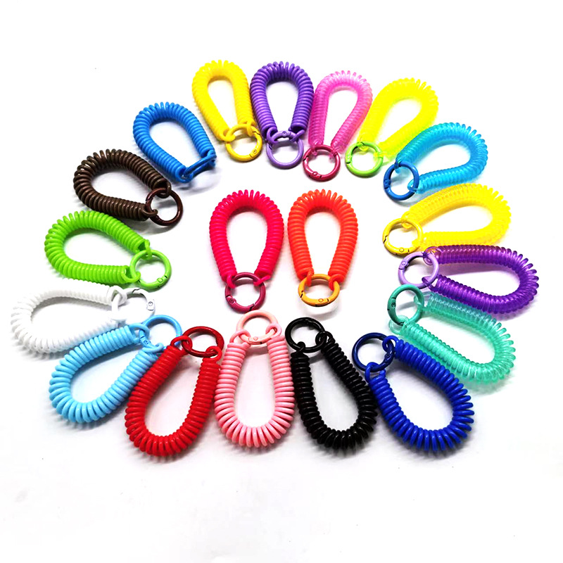 Gantungan Kunci Pegas Plastik Tali Elastis Warna Permen Tas Murid Sekolah Kreatif Kotak Buta Boneka Aksesori Gantung Tali Musim Semi