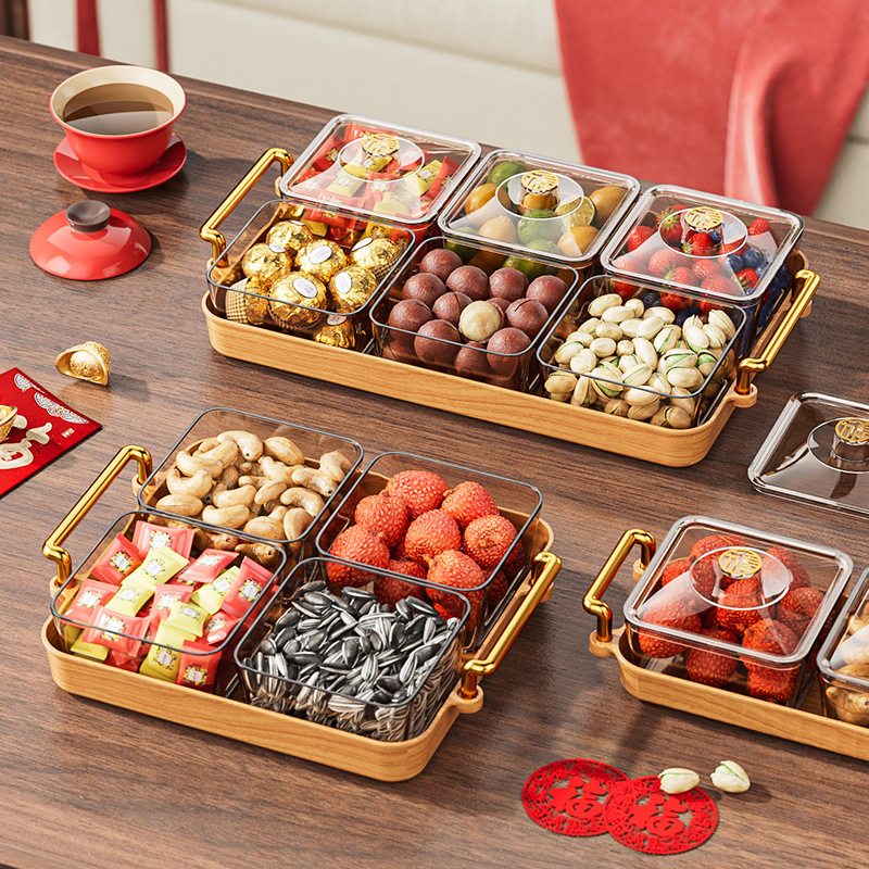 Kotak permen Pernikahan Tahun Baru Cina kotak buah kering piring buah ruang tamu meja kopi makanan ringan klasifikasi dengan tutup kayu gandum piring buah