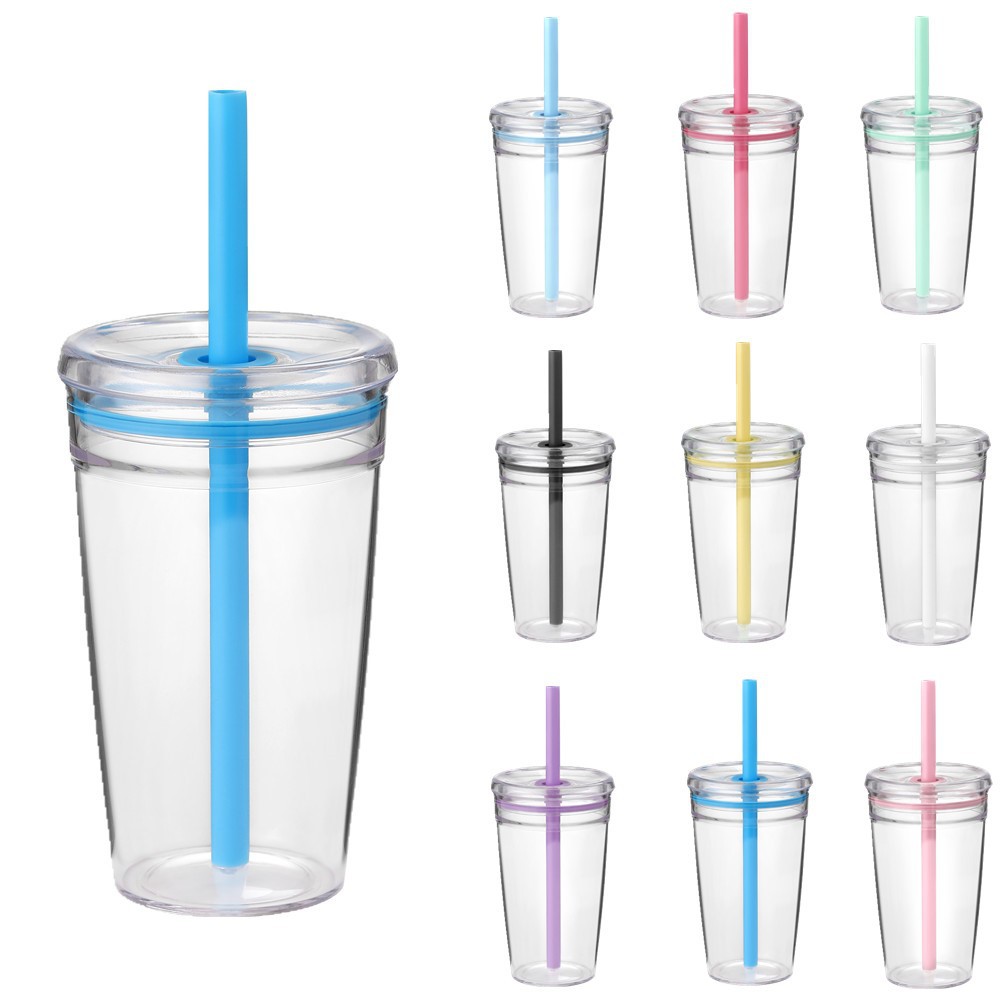 Cross-Border Penjualan Panas 450ml Satu Lapis Tritan Sedotan Cangkir Teh Susu Cangkir Kopi Permen Multicolor Sedotan Cangkir Air