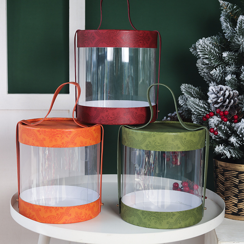 Kotak hadiah PVC cetak dengan pegangan, kotak ember hadiah Tahun Baru, hadiah pernikahan, kotak hadiah permen, kotak hadiah dengan stempel emas.