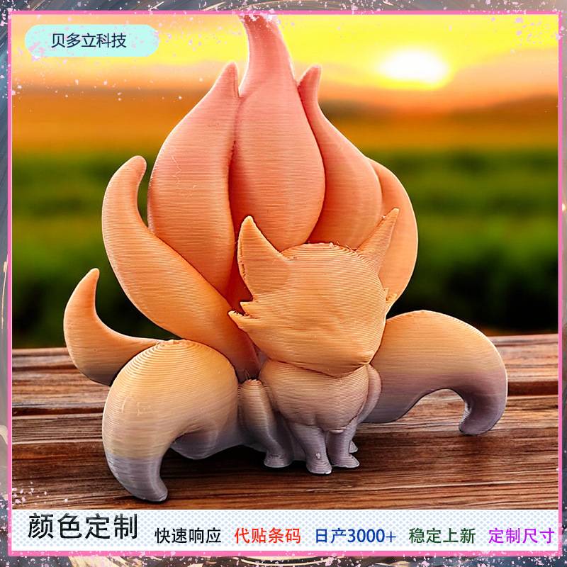 Amazon 3D Cetak Lintas Batas Warna Permen Model Ekor Sembilan Ekor Rubah Sendi Mainan Ornamen Tangan yang Fleksibel