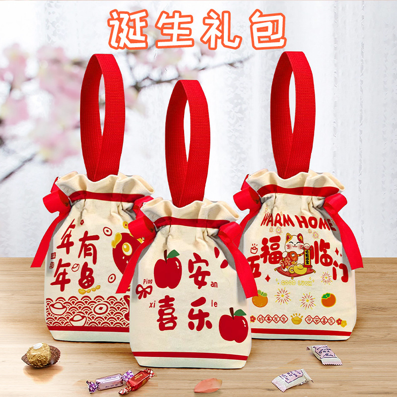 Kesemek Ruyi Tas Hadiah Tas Permen Hadiah Hadiah Pertemuan Tahunan Tas Kanak-Kanak Tas Kanvas Tahun Baru