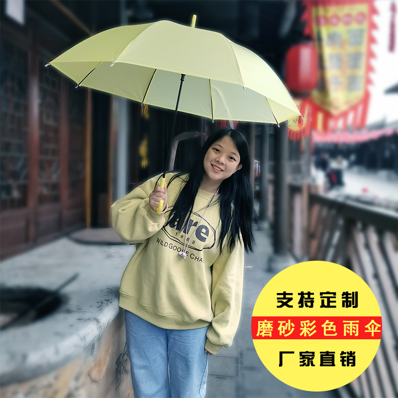 Payung timbul beku warna permen segar batang lurus transparan warna solid payung otomatis pabrik Chongqing grosir payung iklan