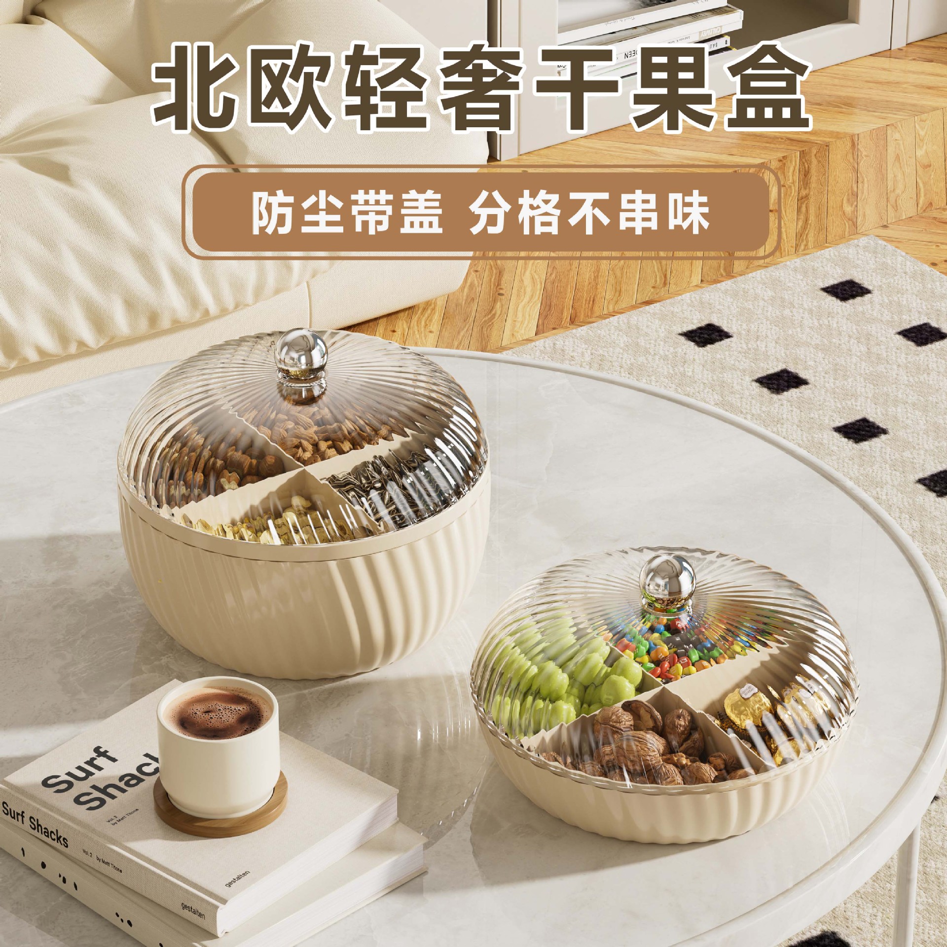 Piring buah pernikahan sederhana mode Tahun Baru bulat kotak permen kotak permen kapasitas besar grid kacang melon biji piring buah kering