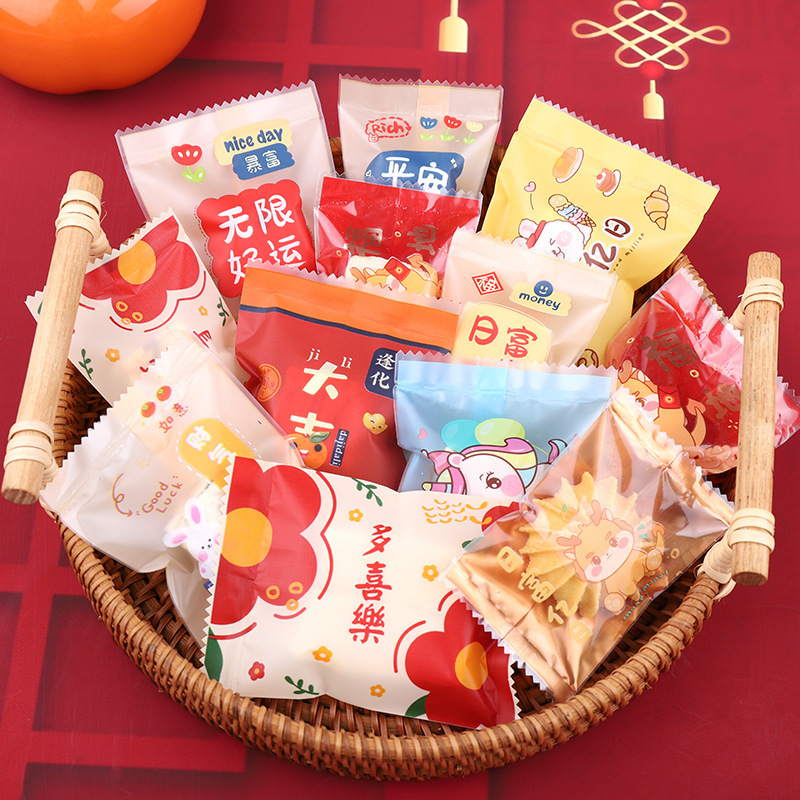 2024 Naga Tahun Baru tas permen nougat tas kemasan mesin segel transparan lucu penyegelan sendiri permen kertas tas kecil