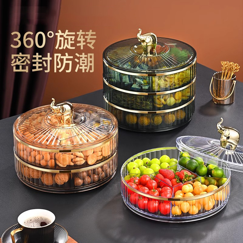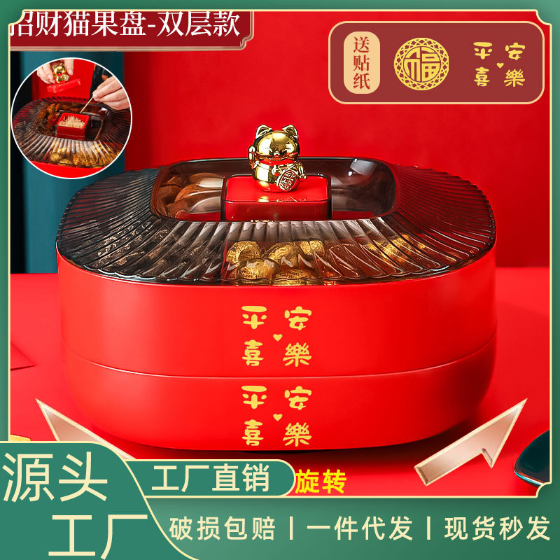 Piring Buah Kering Tahun Baru Tahun Baru Kotak Permen Berputar Piring Buah Berputar Rumah Tangga Piring Buah dengan Penutup